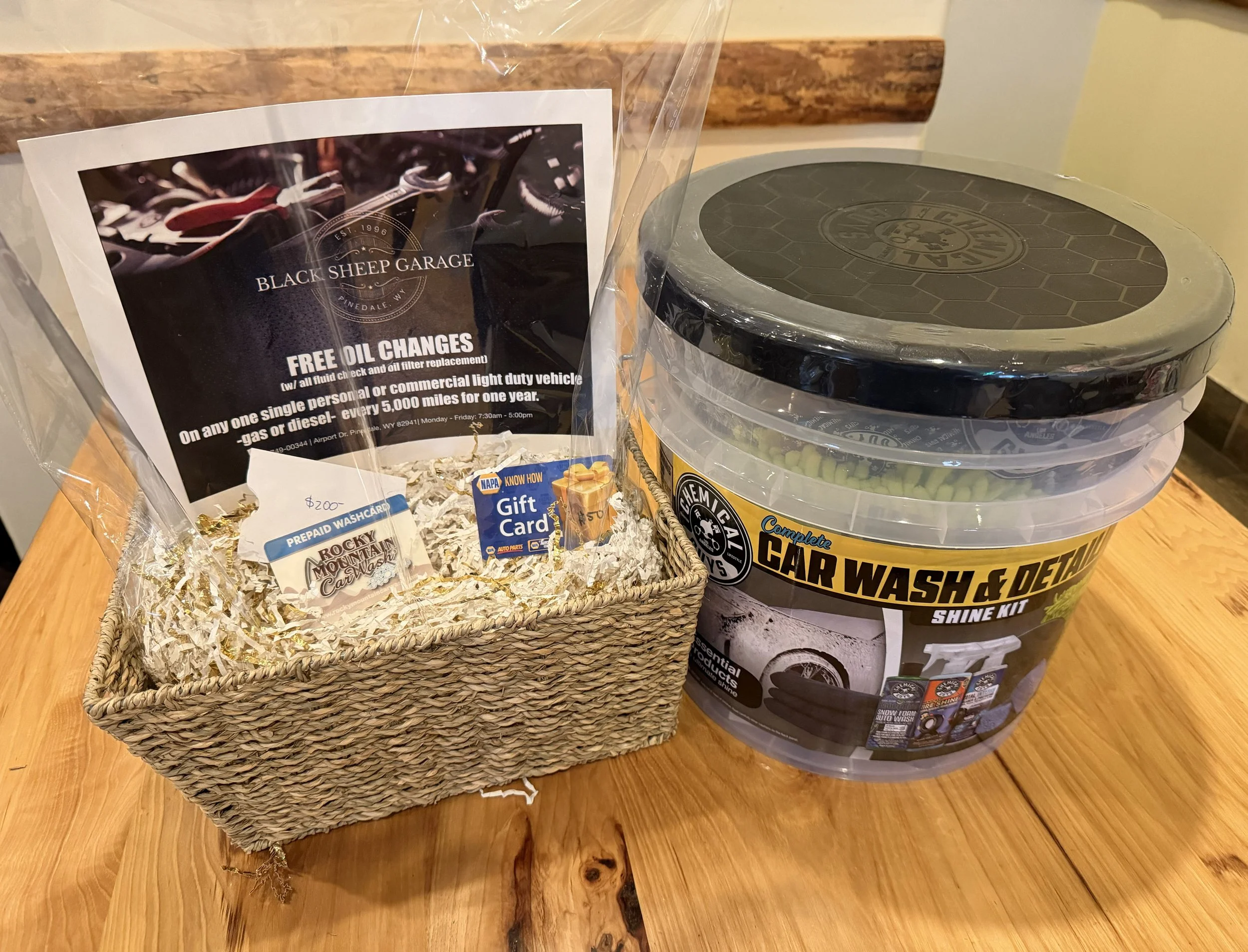 Treat your vehicle to unlimited free oil changes every 5,000 miles for a year on any single personal or commercial light duty vehicle, $200 worth of Rocky Mountain Car Washes, $50 Napa gift card and a Car Wash and Detail bucket.